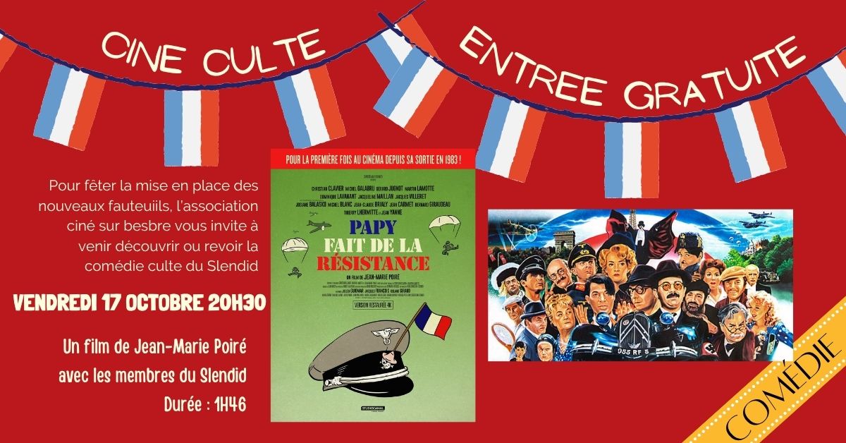 VENDREDI 17 OCTOBRE à 20h30, l'association Ciné sur besbre, gérante du cinéma René Fallet vous convie à une séance gratuite du film culte du Splendid. Venez rire dans notre salle avec un confort décuplé, ce sera l'occasion de tester les nouveaux fauteuils. On vous attend nombreux, et on vous le rappelle c'est gratuit !