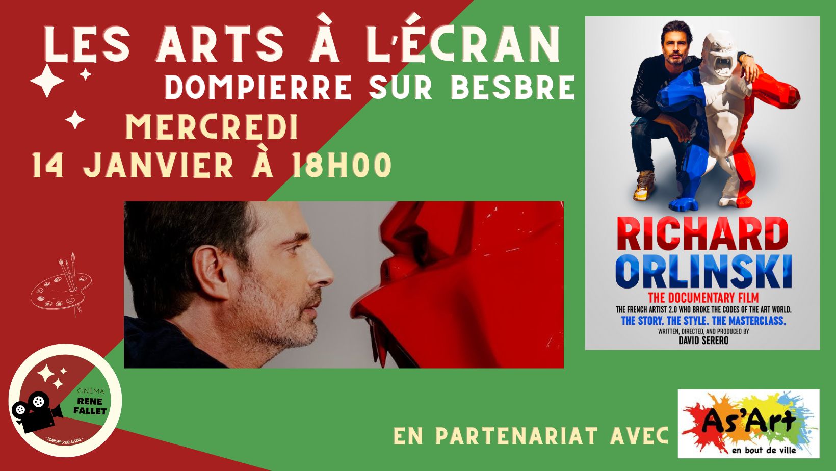 🎨 Le Rendez-vous des arts à l’écran vous donne rendez-vous le mercredi 14 janvier 2026 à 18h00, au cinéma René Fallet de Dompierre-sur-Besbre. En partenariat avec l’association As’Art en bout de ville, venez découvrir un documentaire captivant consacré à Richard Orlinski, artiste contemporain parmi les plus reconnus et les plus audacieux de sa génération. ✨ Plongez dans l’univers d’un créateur hors normes, entre sculptures monumentales, couleurs vibrantes et énergie brute. 🎥 Un film inspirant, qui révèle les coulisses de la création et le parcours d’un artiste au succès international. 📍 Un moment unique à partager, au cœur de votre cinéma, pour voir l’art autrement… sur grand écran. 👉 Une soirée culturelle à ne pas manquer, pour les curieux, les passionnés d’art et les amateurs de belles découvertes.
