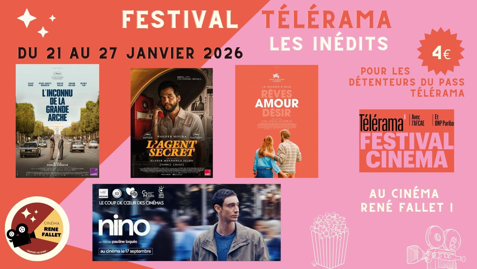 🎬 Festival Cinéma Télérama 2026 – Cinéma René Fallet (Dompierre-sur-Besbre) Envie de voir des films que tu n’as jamais vus ici ? Le Festival Télérama est l’occasion parfaite de vivre le cinéma autrement, sur grand écran, à petit prix. ✨ Des inédits, forts et marquants L’Inconnu de la Grande Arche : une histoire vraie fascinante, entre ambition, création et destin. L’Agent secret : un thriller intense et humain, sous tension du début à la fin. La trilogie d’Oslo – Amour : un cinéma sensible et profond sur les relations humaines. Nino : un portrait touchant et lumineux, qui parle à tout le monde. 🎟️ Pourquoi y aller ? ✔️ Des films d’auteur sélectionnés par Télérama ✔️ Des œuvres jamais projetées au cinéma René Fallet ✔️ Une ambiance unique, loin des blockbusters ✔️ Un tarif exceptionnel pendant le festival 🍿 Le Festival Télérama, c’est la promesse de découvertes, d’émotions et de vrai cinéma. 👉 Une excellente raison de pousser la porte du cinéma René Fallet et de se laisser surprendre.