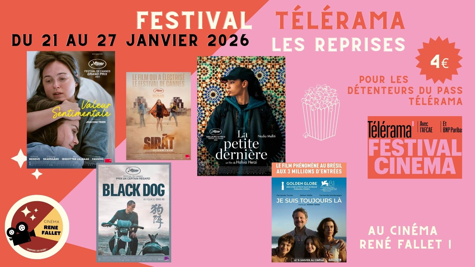 Voici 5 excellentes raisons d’aller (re)voir ces films en reprises au cinéma René Fallet pendant le Festival Télérama 2026 — l’occasion de redécouvrir ce qui a marqué l’année cinéma 2025 : 🎬 Valeur sentimentale – Une comédie dramatique familiale bouleversante où secrets et créativité se croisent, signée par Joachim Trier (critique acclamée). Profitez d’un récit intime porté par des acteurs puissants. 🚀 Sirât – Road-movie hypnotique dans le désert marocain, à la fois quête paternelle et expérience sensorielle intense, récompensé à Cannes 2025. 🌟 La petite dernière – Un film émouvant sur l’émancipation d’une adolescente tiraillée entre tradition et liberté, porté par une performance impressionnante. 🐺 Black Dog – Une fable moderne à la croisée du drame social et du western, où l’amitié improbable entre un homme et un chien illumine des paysages spectaculaires. 🇧🇷 Je suis toujours là – Une fresque familiale vibrante face à l’oppression politique, bouleversante et universelle, signée Walter Salles. ✨ Et tout ça pour seulement 4 € la séance avec le pass Télérama, une belle façon de célébrer le cinéma art et essai en salle !