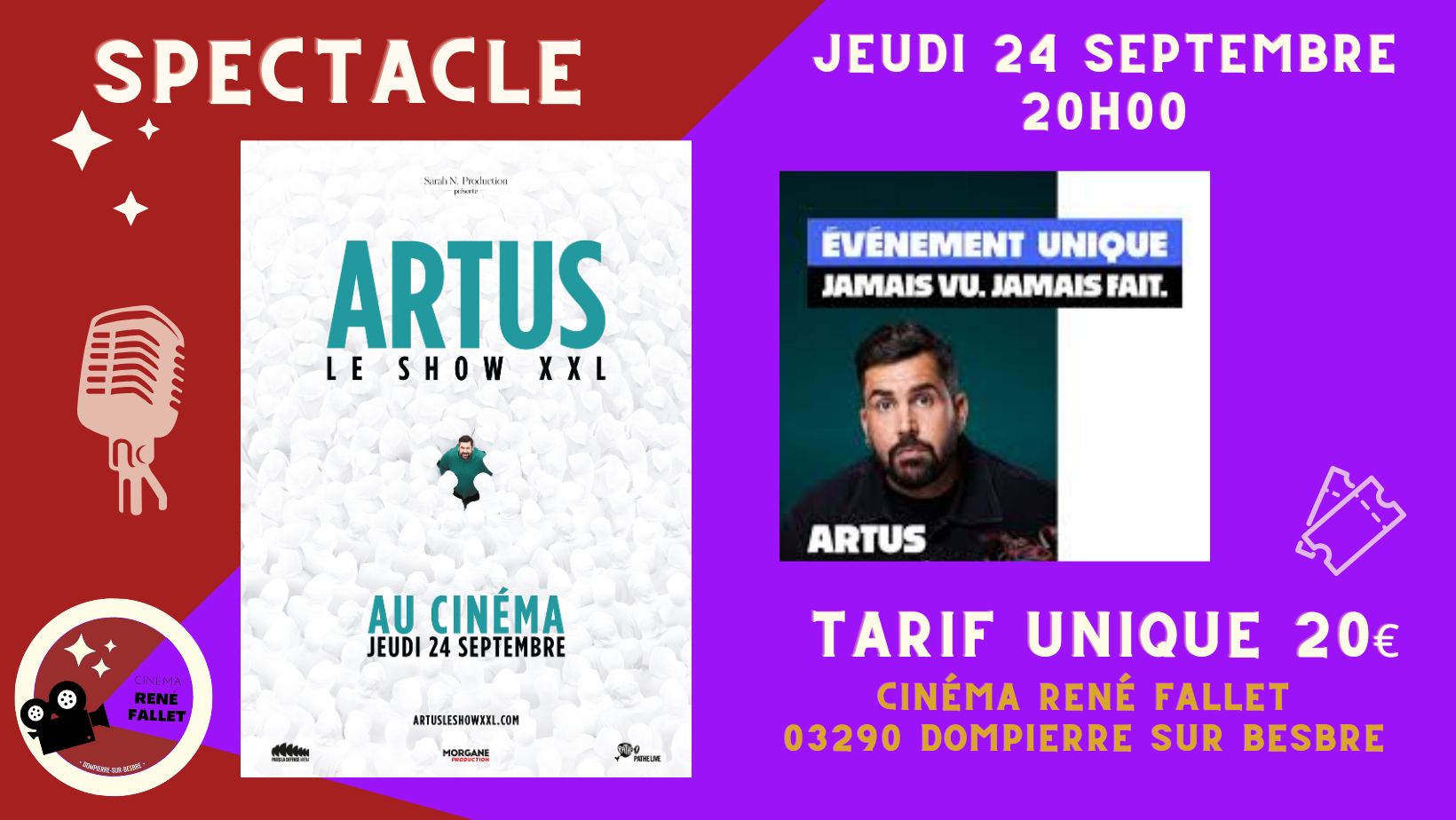 ARTUS - LE SHOW XXL AU CINÉMA BILLETTERIE OUVERTE ! Il est le premier humoriste à se produire sur la scène de Paris la Défense Arena, la plus grande d’Europe. Le show XXL d’ARTUS sera à l’affiche de votre cinéma le jeudi 24 septembre à 20h00. Artus signe un show XXL à voir sur grand écran ! Il entre dans l'Histoire en devenant le premier humoriste à investir Paris La Défense Arena, la plus grande salle d’Europe, dans un format totalement inédit : une fusion des genres, entre humour et expérience live jamais vue auparavant. Séance unique dans votre cinéma le jeudi 24 septembre à 20h00 dans votre cinéma ! Réservez dès maintenant : artusleshowxxl.com OU https://www.cinemarenefallet.fr/.../artus-le-show-xxl-au.../ INSTAGRAM @artus.officiel FACEBOOK @artus @cinemarenefallet TIKTOK @cestmoilevraisylvain