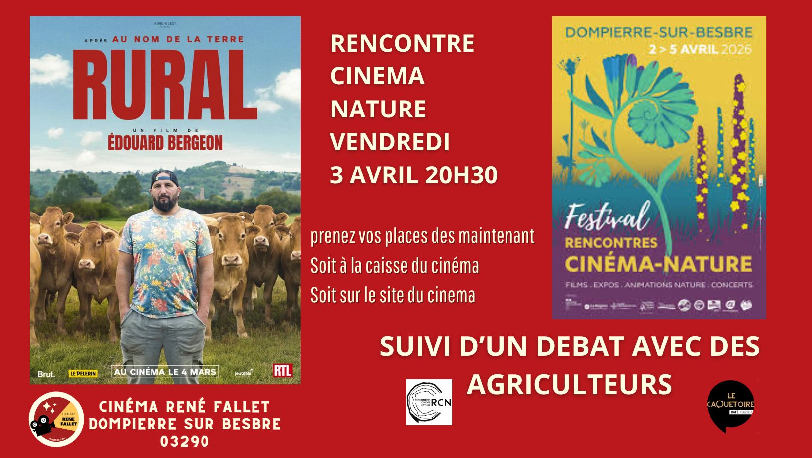Quand la nature s’invite sur grand écran, les histoires prennent racine 🌱 À l’occasion des Rencontres Cinéma Nature 2026, le cinéma René Fallet vous embarque avec RURAL, un documentaire vibrant qui explore nos liens profonds avec les territoires, ceux qui les habitent et les façonnent. Et parce que le réel continue après le générique, la projection sera suivie d’un échange avec des agriculteurs locaux 🚜 Une séance pour voir, ressentir… et dialoguer 🌿